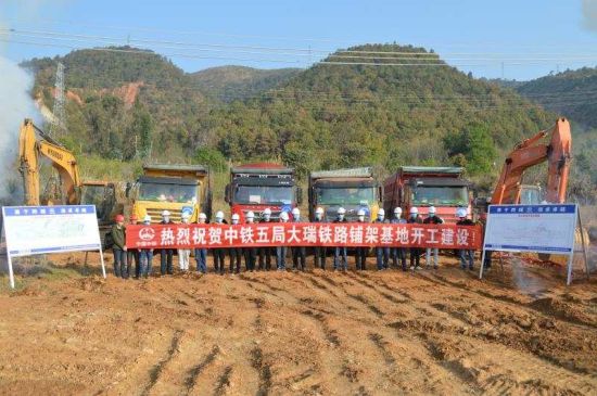 3月25日8時(shí),云南省保山市春光明媚、生機(jī)盎然,中鐵五局大瑞鐵路鋪架項(xiàng)目部40余名管理和勞務(wù)人員齊聚在大瑞鐵路保山火車站旁,舉行了簡單而隆重的“大瑞鐵路鋪架基地建設(shè)開工儀式”,隨著一聲“開工”令下,挖掘機(jī)發(fā)出了巨大的轟鳴聲,一斗重達(dá)2噸的泥土被倒入土石方運(yùn)輸車輛內(nèi),現(xiàn)場響起了參建人員的歡呼聲和喜慶的鞭炮聲,標(biāo)志著大瑞鐵路施工取得重大進(jìn)展,工程建設(shè)施工即將進(jìn)入鋪軌架梁階段。鋪架基地的正式開工建設(shè),為確保按期開通大瑞鐵路奠定了基礎(chǔ)。