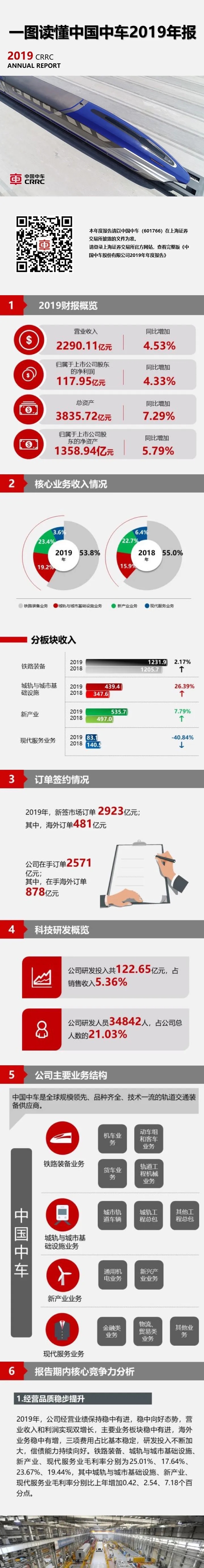 根據(jù)資料,中車主要經(jīng)營鐵路機(jī)車車輛、動(dòng)車組、城市軌道交通車輛、工程機(jī)械等,是全球規(guī)模領(lǐng)先的軌道交通裝備供應(yīng)商。截至2019年12月末,公司合并資產(chǎn)總額為3835.72億元,增幅為7.29%;凈資產(chǎn)1358.94億元,增幅為5.79%,資產(chǎn)負(fù)債率為58.59%,比年初增加0.46個(gè)百分點(diǎn)。