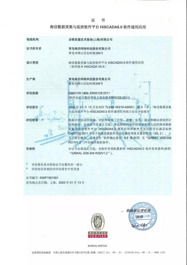 圖 | 綜合監(jiān)控系統(tǒng)SIL認(rèn)證證書