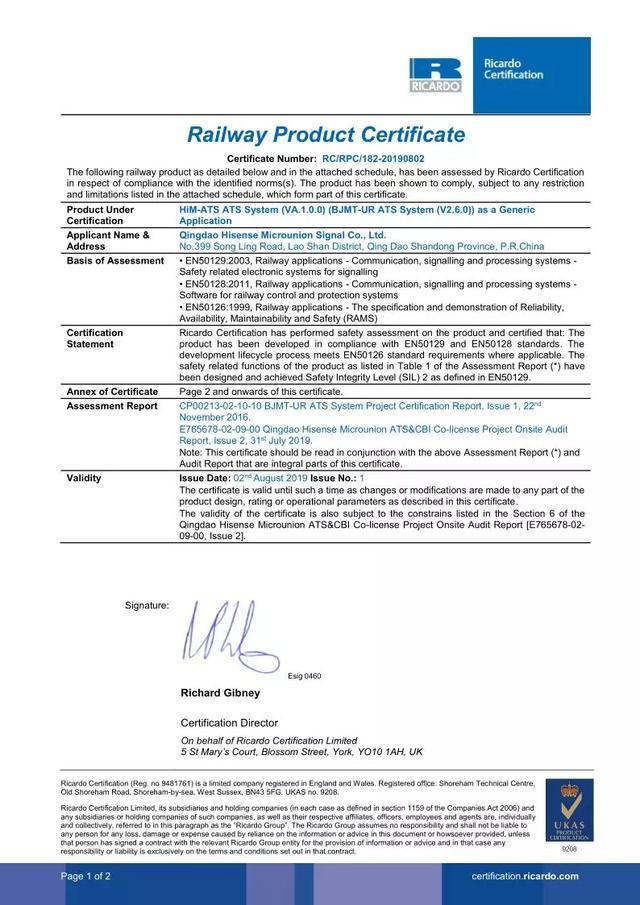 圖 | 信號系統(tǒng)SIL認(rèn)證證書