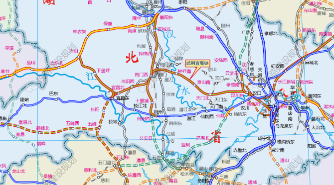 沿江高鐵武漢至宜昌段線路走向示意圖▼