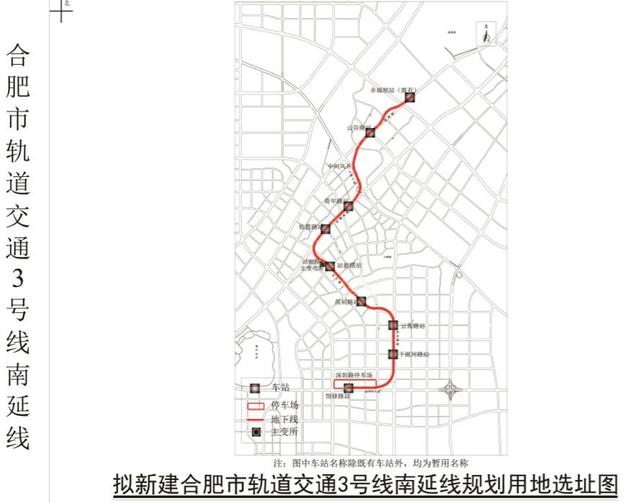 從規劃圖上看,3號線南延段起于杭埠河大道的館驛路站,這里設置深圳路停車場,往北設置下派河路站、云霄路站、芮祠路站、站前路站、仙霞路站、青年路站、云谷路站、再到翡翠路拐入既有的幸福壩站。