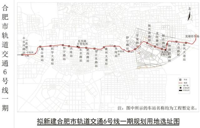 合肥市軌道交通6號線一期工程,本次選址起于豐樂河路站,主要沿蜀山大道、玉蘭大道、望江西路、望江東路、太湖路、堯渡河路、高亮路、鐘油坊路、和平路等道路敷設,本次新建線路長約27.5公里,新建車站17座,區間風井2處。