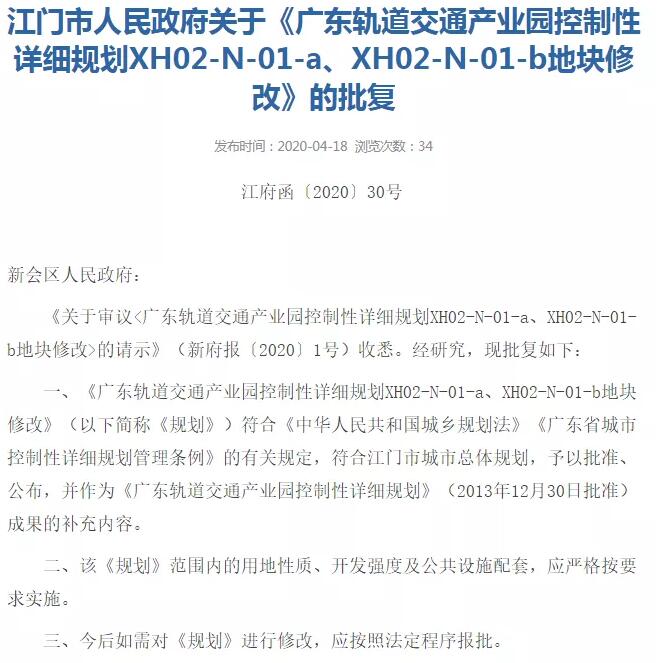 近日,江門公布了廣州軌道交通產業園控制性詳細規劃獲批情況,以下為詳情: