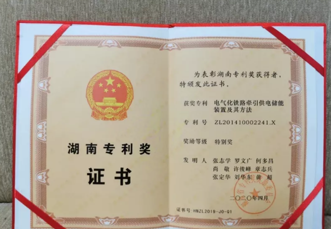 4月22日,2019年度湖南專利獎正式揭曉,全省61項專利榜上有名。其中,中車株洲所“電氣化鐵路牽引供電儲能裝置及其方法”發明專利獲得全省唯一的特別獎。