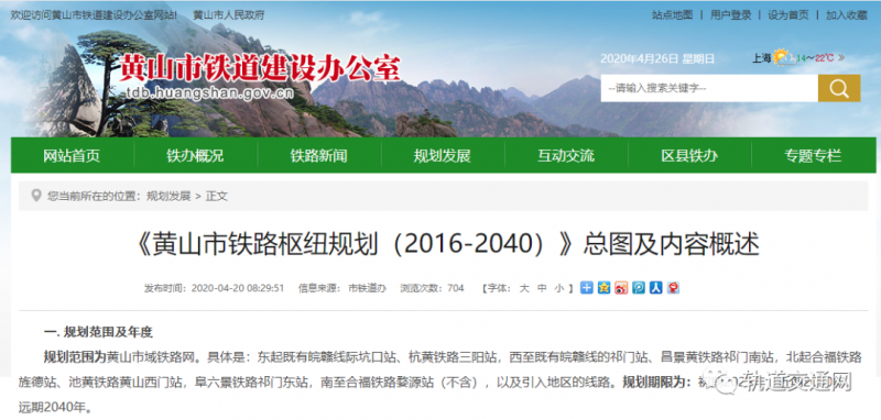 《黃山市鐵路樞紐規劃(2016-2040)》總圖及內容概述