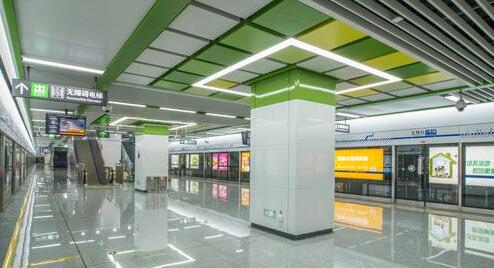據成都軌道集團建設分公司介紹,為凸顯1號線三期對于成都“南拓”的重要意義,結合天府新區地域文化特點,車站裝飾裝修設計全程貫穿“天府新象”的設計理念,以滋潤天府之國的岷江水系作為設計元素,以現代的表現手法抽象水網形態,通過線性燈光進行呈現,強調地下空間舒適、簡潔、流暢的同時,旨在打造光影流動的“天府新象”。