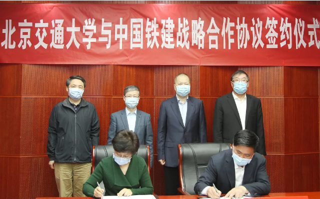5月8日,鐵建與北京交通大學在鐵建大廈簽署戰略合作協議。鐵建黨委書記、董事長陳奮健,總裁、黨委副書記莊尚標,北京交通大學黨委書記黃泰巖,校長、黨委副書記王稼瓊共同出席簽約儀式。鐵建副總裁劉成軍與北京交通大學副校長高艷分別代表雙方簽署協議。協議簽署前,雙方就深化校企合作進行了交流。