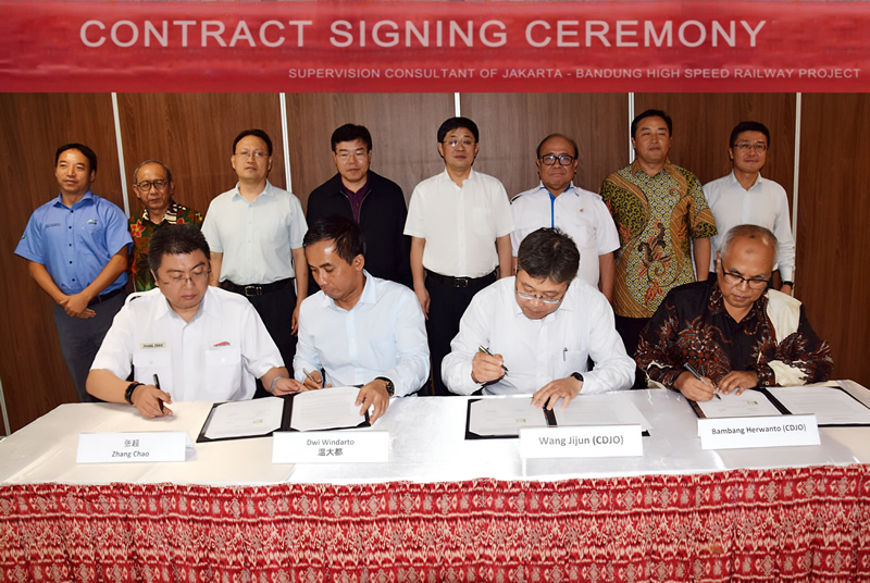 2016年3月,鐵科院派出人員進入印尼為實施雅萬高鐵監理咨詢項目進行各項準備工作;2016年11月,獲得印度尼西亞外國投資協調委員會頒發的外國施工服務業務代表處準證,標志著鐵科院印尼代表處正式成立,并與印尼達德拉公司簽署了聯合體協議,正式成立了雅萬高鐵監理咨詢聯合體。過去的兩年內,鐵科院院積極參與雅萬高鐵的各項工作,在歷經數次與項目業主中印尼高鐵合資公司的談判后,雙方于2018年3月8日正式簽訂印尼雅萬高鐵項目施工監理合同。