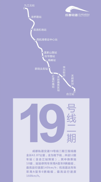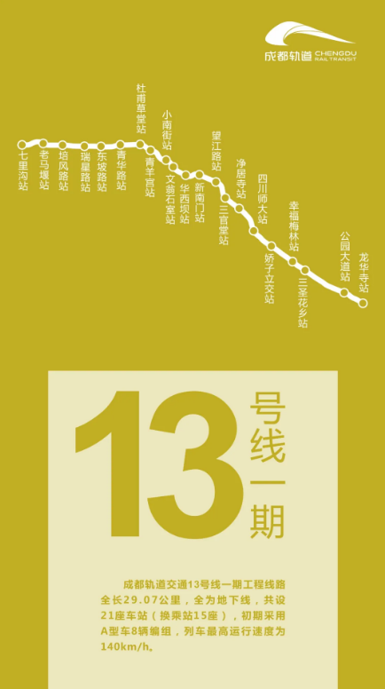 成都軌道交通8號線總體呈西南-東北走向,8號線二期工程作為一期工程的延伸線,共分兩段線路。其中西南延伸段(西航港客運中心站-蓮花站<不含>,沿西航港大道敷設)共設1站1區間,線路長1.25km;東北延伸段(十里店站<不含>-龍潭寺東站,沿成華大道-規劃路敷設)共設6站6區間,線路長6.56km。8號線二期工程線路全長7.81km,均為地下線,共設置車站7座,其中換乘站3座,平均站間距為1.12km,最高運行速度80km/h。設龍潭寺停車場1座,龍潭寺主變電所1座;控制中心共享崔家店控制中心。