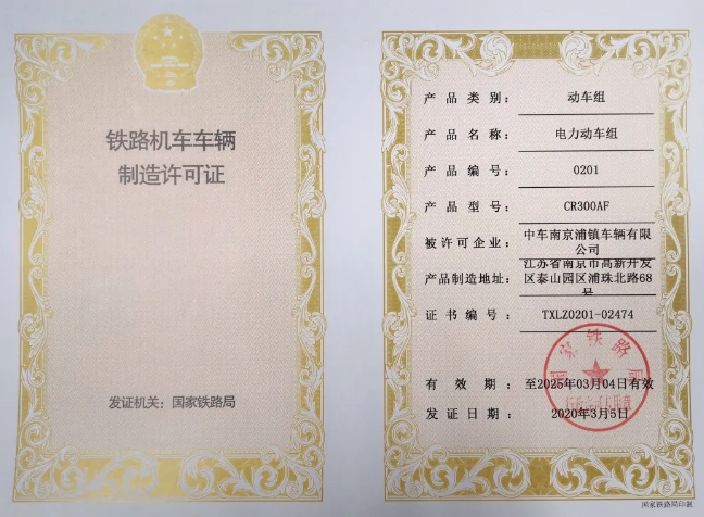 5月18日,國家鐵路局正式公布了中車浦鎮公司獲CR300AF電力動車組制造許可情況,公告顯示中車浦鎮正式進入時速250公里“復興號”標準動車組制造領域。