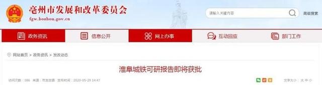 近日,淮北--阜陽城際鐵路(雙堆集至阜陽西)可行性研究報告已報至省發展改革委,待國鐵集團出具咨詢意見后,可望6月份獲得審批。