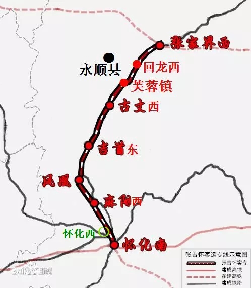 張吉懷高鐵通車后,將銜接黔張常鐵路、焦柳線、渝懷、滬昆客運專線、懷邵衡等鐵路線,輻射湘西主要城市;從懷化到張家界時間將由3.5小時縮短至1小時,到長沙2個小時以內,到廣州5個小時以內,到上海8個小時以內。