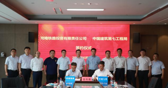 6月14日下午,中建七局與河南鐵路投資有限責任公司(以下簡稱河南鐵投)舉行戰(zhàn)略框架合作協議簽約儀式,致力于攜手共進為河南鐵路建設做出更大貢獻。河南鐵投黨委書記、董事長悅國勇,黨委委員、總會計師王太鋼,中建七局黨委書記、董事長方勝利,局副總經理、一公司黨委書記、董事長程文彬等出席簽約儀式。