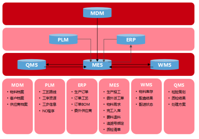 統籌實現車間制造執行系統(MES)與產品生命周期管理系統(PLM)、企業資源計劃(ERP)、質量管理系統(QMS)等系統間的高效協同與集成,實現生產計劃、庫存信息、物料配送、質量數據、異常信息的高效互通,同時結合智能裝配產線和智能物流倉儲系統實現智能化生產管理。