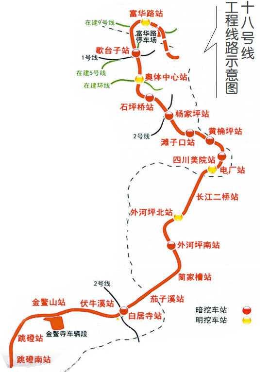 董振倓介紹,十八號線為重慶市南北貫通軌道交通的主干線,起點為富華路,途經渝中區、九龍坡區、巴南區和大渡口區,串聯大楊石、李家沱和大渡口組團,止于跳磴南站。