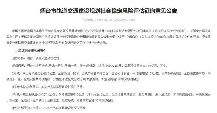 6月28日,煙臺市軌道交通集團有限公司發(fā)布了:煙臺市軌道交通建設(shè)規(guī)劃社會穩(wěn)定風(fēng)險評估征詢意見公告。