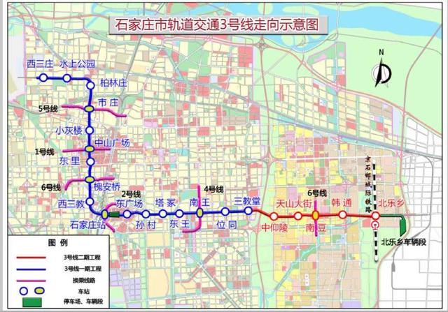 3號線是石家莊市軌道交通線網規劃中的一條西北—東南走向的骨干線路。3號線一期工程分布在中心城區范圍,沿聯盟路、中華大街、石家莊站、塔北路敷設,線路全長19.5公里,設站17座。目前,3號線一期首開段6座車站已開通試運營,一期兩邊段工程正在建設中。