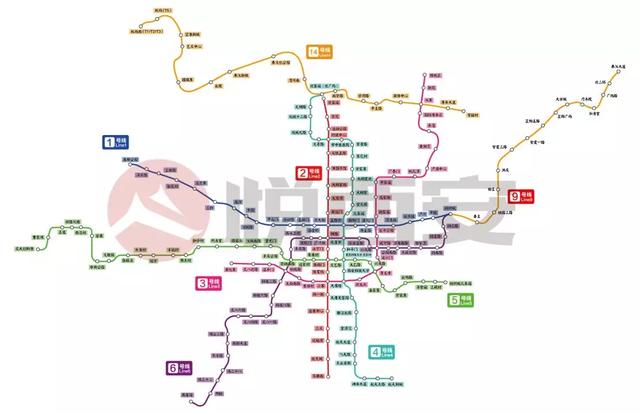 1號線、2號線、3號線、4號線、5號線、6號線(一期)、9號線、機場城際鐵路