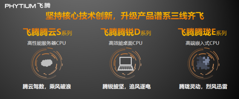 作為芯片研發(fā)“國家隊(duì)”的核心成員和新基建的重要力量,飛騰公司已經(jīng)形成完整的多樣化算力產(chǎn)品譜系,為從端到云的各型設(shè)備提供核心算力支撐,并持續(xù)推進(jìn)產(chǎn)品創(chuàng)新。
