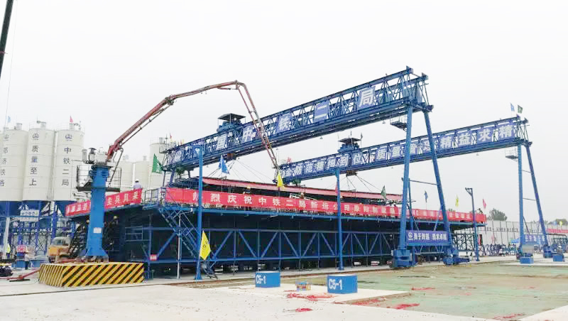 鄭濟高鐵是國家十三五重點規(guī)劃項目,是鐵路中長期規(guī)劃網(wǎng)中山東半島至中原地區(qū)的重要高鐵通道,并與規(guī)劃建設中的京港高鐵以及京廣、京滬高鐵連接互通。鄭濟高鐵河南段鄭州黃河特大橋北岸引橋使用預制架設時速350公里40米簡支箱梁,節(jié)省了工程建設投資,提升了工程建設效率。在鐵路總公司和河南城際公司的大力支持下,中鐵二局新運公司原陽制梁場作為高速鐵路40米箱梁首個工程應用工點,將應用1000噸級輪胎式搬梁機、2x500噸級跨線提梁機、1000噸槽型主梁低位運梁車、1000噸步履式架橋機各一套,并建成新時代標準化制梁場。