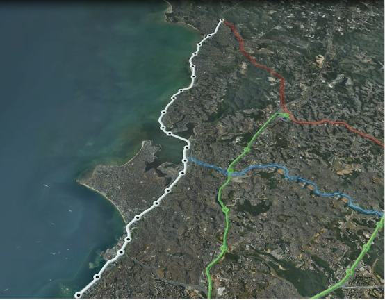 云軌地形適應能力極強,轉彎半徑僅為45米,爬坡能力可達10%,編組靈活,單向運能為1-3萬人/小時,被招標小組認為“十分符合”規定的相關技術指標,且云軌在低空運行的特點也成為加分項之一——完全契合薩爾瓦多打造“沿海旅游走廊”的發展規劃:軌道交通在空中運行,不占用道路面積,且視野極佳,地面則可修建自行車道和海邊休閑步道。