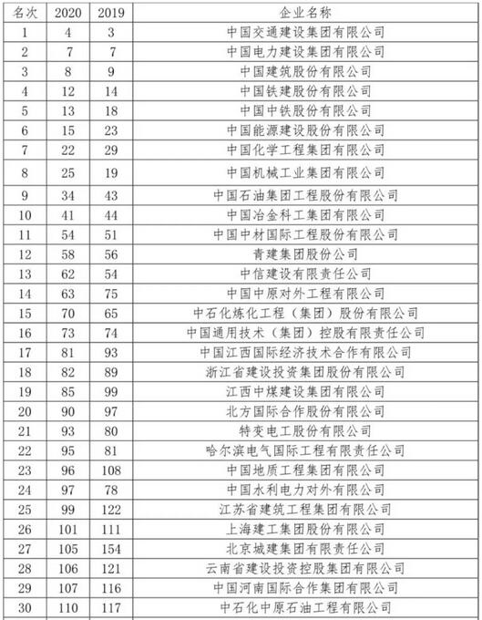 2020年度ENR“全球最大250家國際承包商”上榜企業名單如下:
