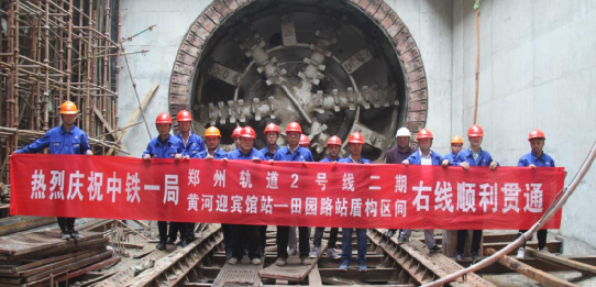 5月29日,“中鐵裝備CTE6250-170號”盾構機刀盤緩緩從黃河迎賓館站左線洞門破土而出,標志著由中鐵一局四公司承建的鄭州市軌道交通2號線二期工程土建施工B合同段整個盾構區間實現全線順利貫通,成為同期在建的鄭州地鐵4號線及2號線第一個實現全線貫通的標段。