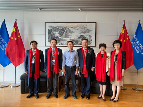 儀式開始前深圳交易所黨委書記、理事長王建軍同志親切會見王稼瓊校長一行,競業(yè)達(dá)董事長錢瑞陪同參加會見。