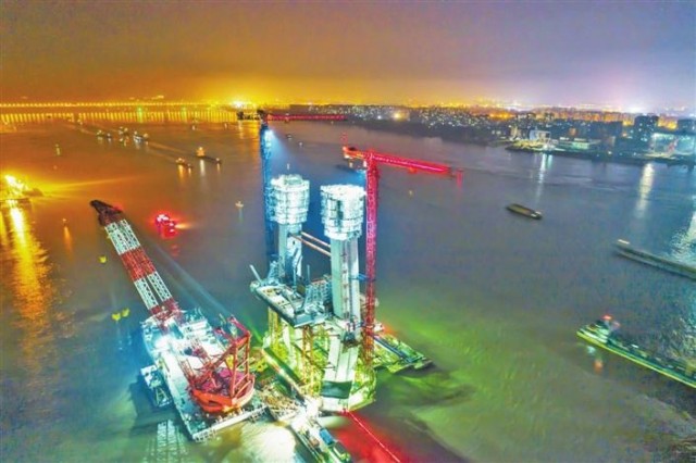據(jù)了解,2號主塔設計高度為155米,共分25個節(jié)段。作為商合杭鐵路蕪湖長江公鐵大橋控制性工程,中鐵大橋局SHZQ-1標項目部的建設者們不分晝夜地投入到項目建設中去,工人們每天兩班輪換,搶抓節(jié)點工期,為保證工程順利推進提供有力保障。