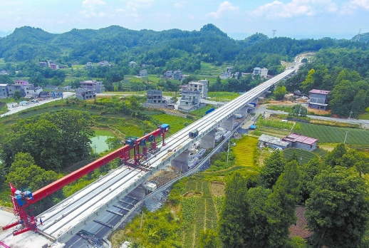 6月12日,隨著黔(黔江)張(張家界)常(常德)鐵路龍山縣段楊家河大橋最后一片“T”梁架設成功,該段線下工程完工,將轉入線上工程施工。