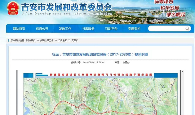 近日,吉安市發改委官網公示了《關于印發吉安市鐵路發展規劃研究報告(2017—2030年)》全文。文章中詳細說明了“新建廈渝通道長沙至贛州鐵路預可行性研究線路平面示意圖”相關信息。