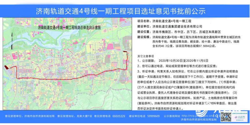 而地鐵4號線一期工程是貫穿濟(jì)南主城區(qū)的東西向骨干線。線路沿青島路、順安路、經(jīng)十路、唐冶中路走行,全長40.2公里。橫跨濟(jì)南市槐蔭區(qū)、市中區(qū)、歷下區(qū)、高新區(qū)。公示期為2020年10月30日-11月5日。