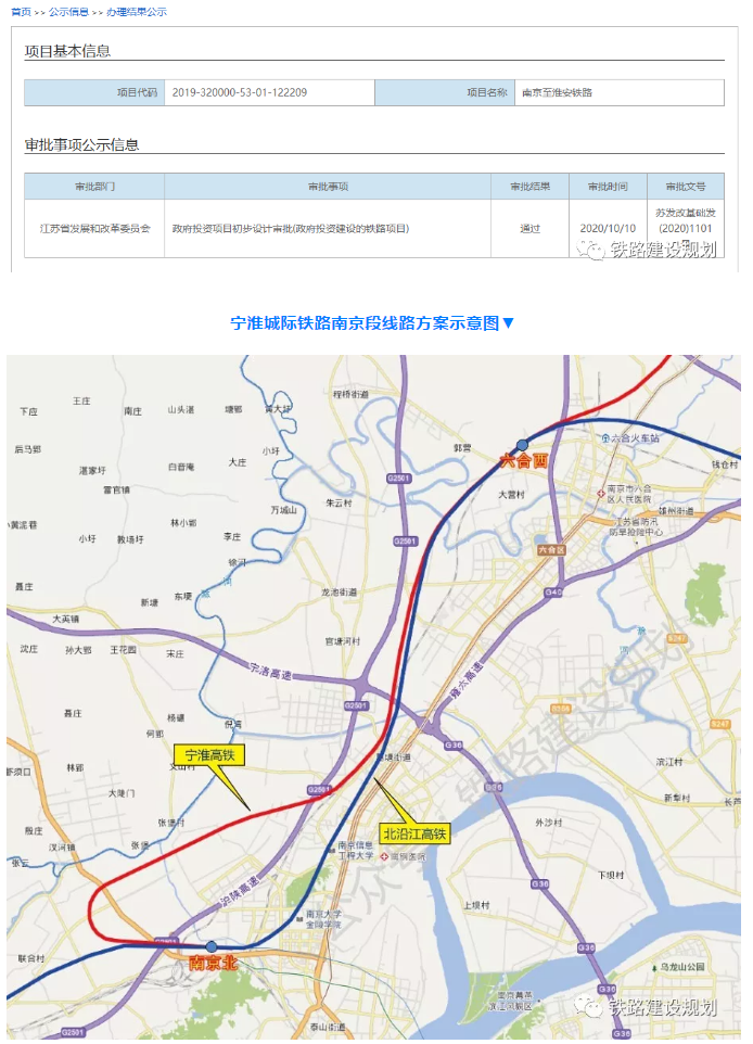 11月2日,江蘇寧淮城際鐵路有限公司發布了《寧淮城際鐵路南京段征拆遷改第三方審價項目招標公告》,根據公告內容,寧淮城際鐵路南京段線路全長約61.9km,目前南京段初步設計尚未批復,六合西、南京北站與北沿江高鐵并站,實施主體尚未明確。