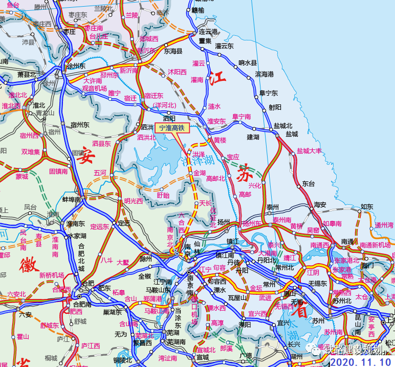 11月9日,安徽省發改委發布了《南京至淮安鐵路(安徽段)可行性研究報告審批前公示 》,公示期至11月20日,標志著寧淮高鐵安徽段可行性研究報告即將批復,項目有望在年底前正式開工建設。