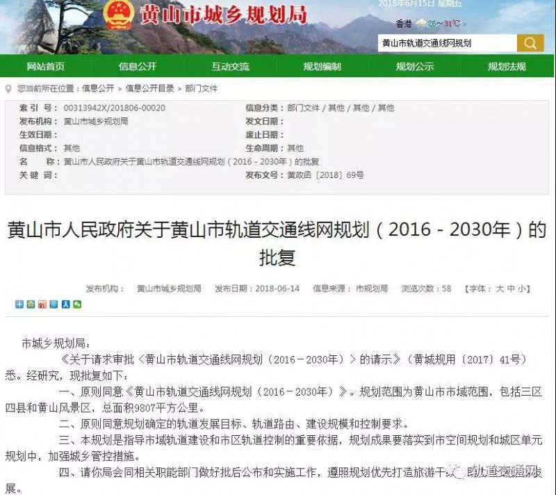 6月14日,黃山市城鄉(xiāng)規(guī)劃局發(fā)布黃山市人民政府關(guān)于黃山市軌道交通線網(wǎng)規(guī)劃(2016-2030年)的批復(fù)相關(guān)信息。