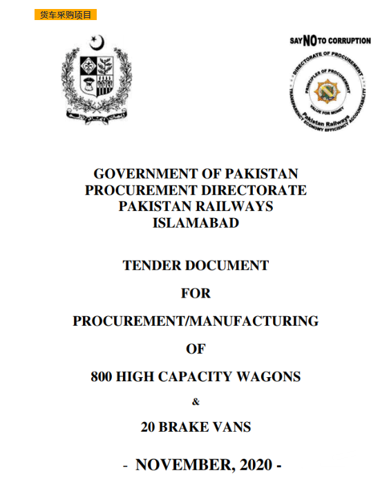 2020年11月,巴基斯坦國家鐵路公司分別發(fā)布2項(xiàng)國際招標(biāo)文件,將采購230輛高速客運(yùn)列車與820輛貨運(yùn)列車,截止日期:2021年01月09日 15:00 (當(dāng)?shù)貢r(shí)間)