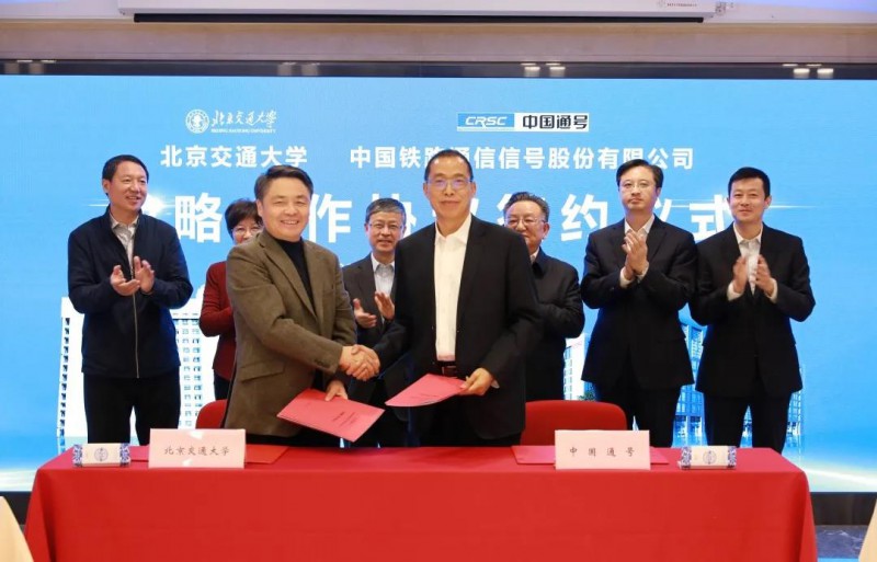 通號副總裁趙曉東,副總裁、總工程師張志輝,總部技術發展部、人力資源部、辦公室負責同志,研究設計院集團、通信信息集團負責同志;北京交通大學副校長高艷、余祖俊,電子信息工程學院、計算機與信息技術學院、國家重點實驗室專家、相關處室負責同志等參加簽約儀式。
