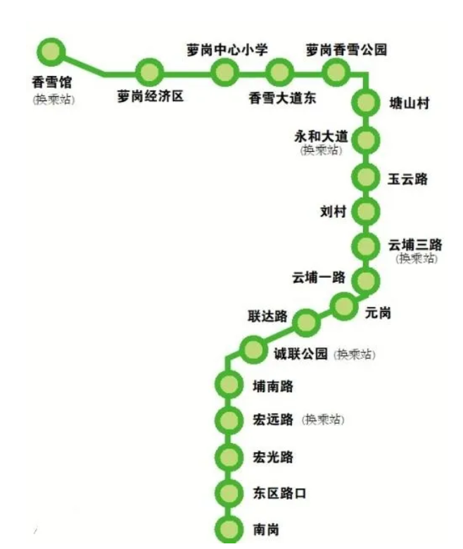 黃埔有軌電車2號線工程為廣東省重點項目,是黃埔區有軌電車線網的南北骨干線。線路起于黃埔圖書館站,終于南崗站。線路全長14.38km,其中地面線約11.84km、新建高架橋1.63km,利用既有橋0.91km。全線共設站19座,其中地面站18座,高架站1座,平均站間距0.79km;設一段一場。黃埔區有軌電車2號線是一條以商務、通勤服務為主的線路,是重點解決區內交通問題并帶動沿線用地開發建設的中低運量交通系統。