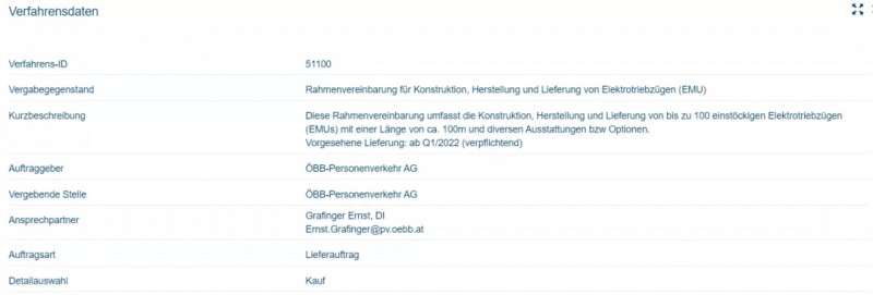 2020年8月,奧地利國家鐵路公司發布招標信息,邀請列車制造商或供應商參與鐵路客車采購項目的初步市場活動,以提供各種方案計劃。當地時間12月10日,鐵路公司正式發布招標邀請信息,將與中標公司簽訂動車組供應框架協議,最多100列。參與截止時間:2020年12月23日 12:00(當地時間)