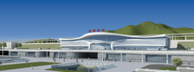 項(xiàng)目新建車站東西巖站距東西巖風(fēng)景區(qū)約3公里,東西巖景區(qū)是以丹霞地貌、畬族文化聞名的國(guó)家4A級(jí)景區(qū),根據(jù)地理環(huán)境和人文特色,車站設(shè)計(jì)方案以“鳳凰來儀,秀麗畬鄉(xiāng)”為意向,在建筑形體上以舒展的曲線和橫向的線條,體現(xiàn)鳳凰展翅的形象,呼應(yīng)丹霞山體的起伏圓韻。