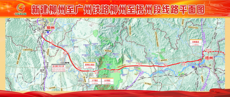 柳州至廣州鐵路柳州至梧州段項目正線全長237.8公里,線路自湘桂鐵路柳州進德站起,后接入洛湛鐵路梧州站。為國鐵I級、雙線電氣化、客貨共線鐵路,設計速度目標值160公里/小時。