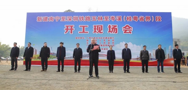 同一天,新建南寧至深圳鐵路玉林至岑溪段(容岑隧道)開工活動在容縣六王鎮古泉村進行。