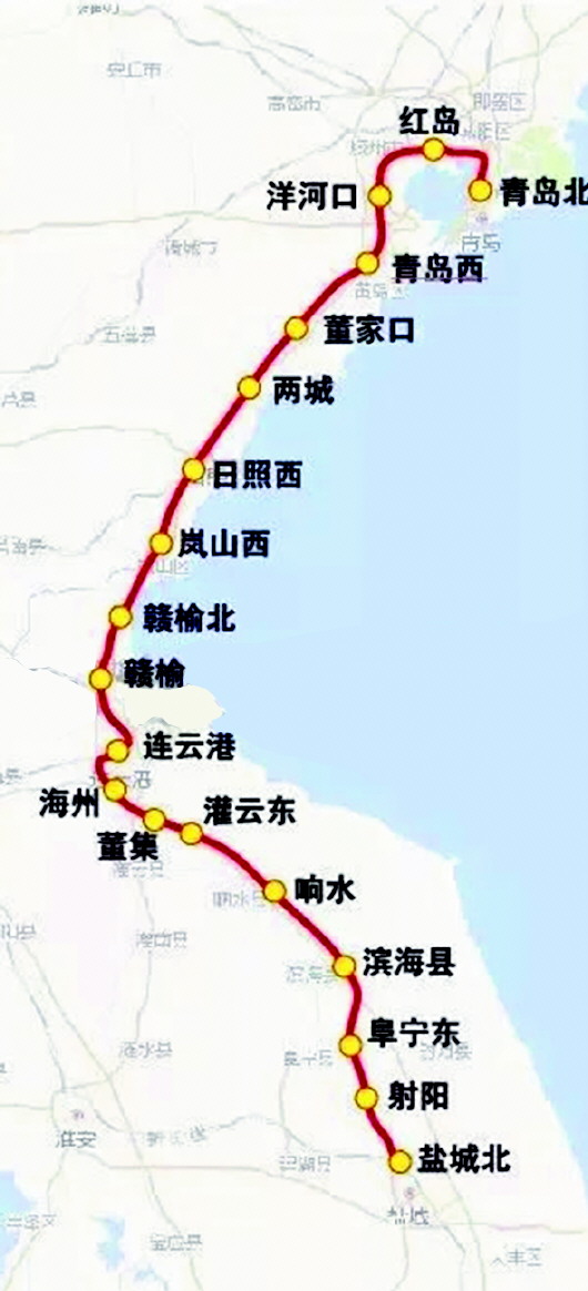 6月17日獲悉,經鐵路總公司批復,青連鐵路與連鹽鐵路合并為青鹽鐵路,全線正線全長428公里,起點青島北,途經日照、連云港,終到鹽城北。線路最高允許時速為200公里,全線計劃于2018年12月底建成通車,建成后開行動車組旅客列車。屆時,青鹽鐵路全程預計最快兩小時45分鐘。青島人前往南方更加快捷,去上海將由現在的7小時縮短至4小時。