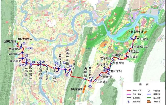 根據項目環評信息公告《重慶軌道交通 24 號線一期工程環境影響報告書(公示稿)》顯示,軌道交通24號線起于沙坪壩區梨樹灣,串聯了高灘巖、鳳鳴山、巴國城、大堰村、九龍半島、二塘、鹿角、重慶東站、迎龍,止于南岸區廣陽灣。