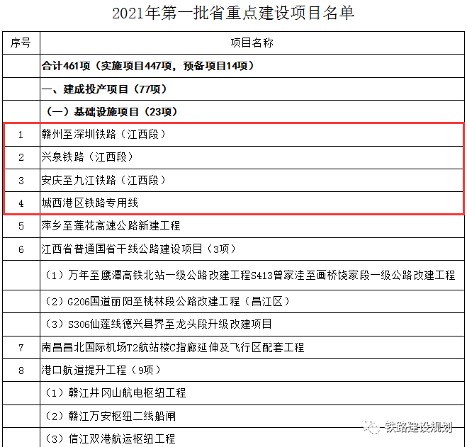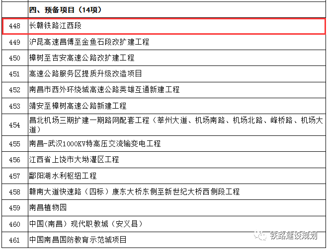 “預備項目”1項:長贛鐵路,將力爭在2021年開工建設。