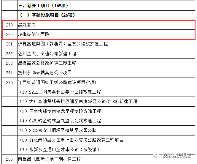 “新開工項目”2項:昌九客專和瑞梅鐵路;