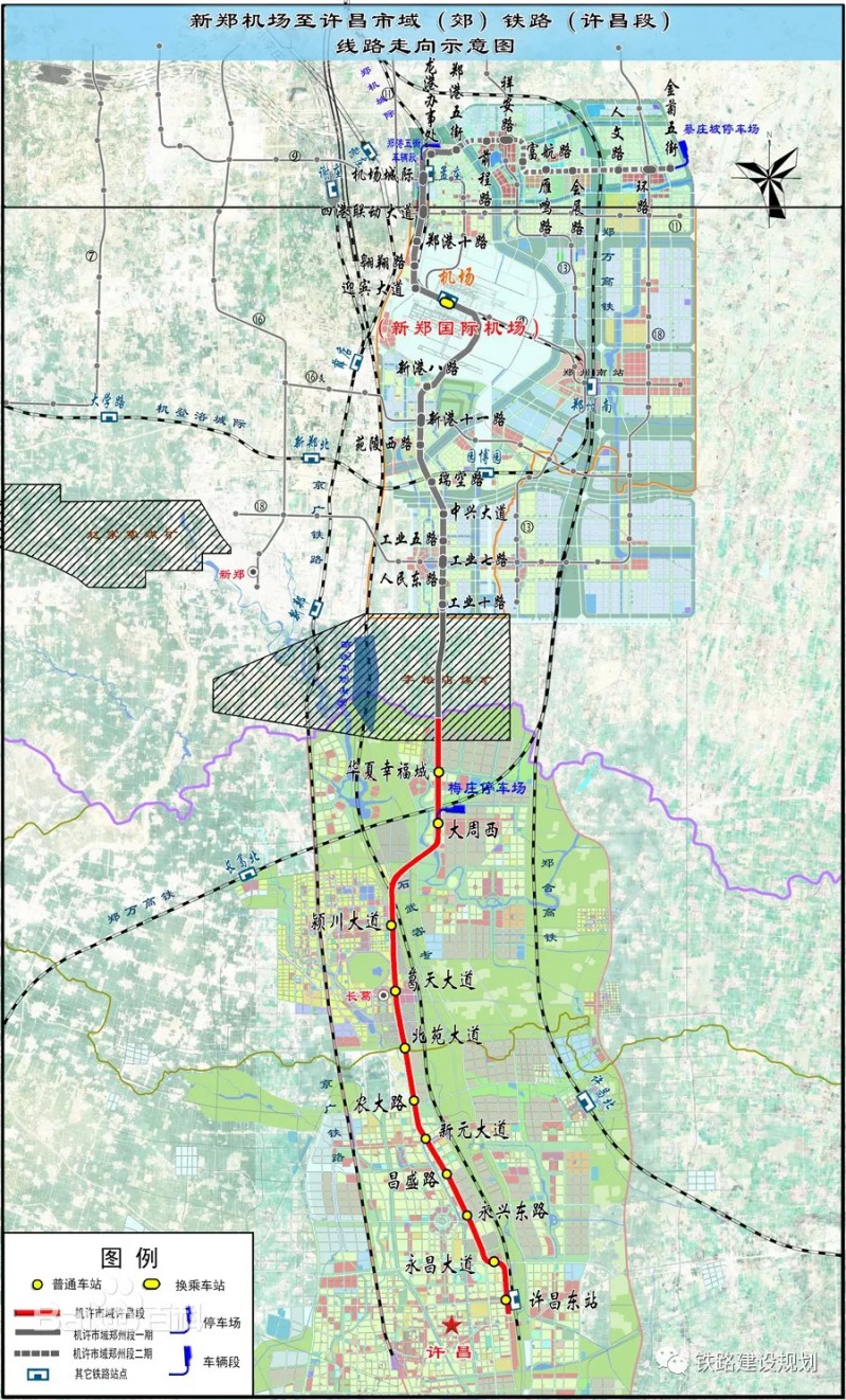 5、鄭州機場至許昌市域鐵路(軌道交通)工程許昌段:線路全長33.7公里,設11站(地上9站、地下2站),設梅莊停車場一處,在芙蓉湖站、長社站附近設主變電站2座。