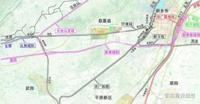 6、新鄉至焦作城際鐵路:線路全長81.328公里,利用鄭焦城際鐵路長20.273公里,新建線路長61.055公里。