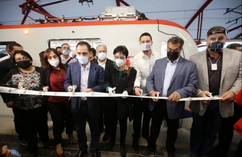 新萊昂州州長海梅·羅德里格斯、財政部長阿圖羅·埃雷拉共同為蒙特雷輕軌3號線列車開通剪彩。